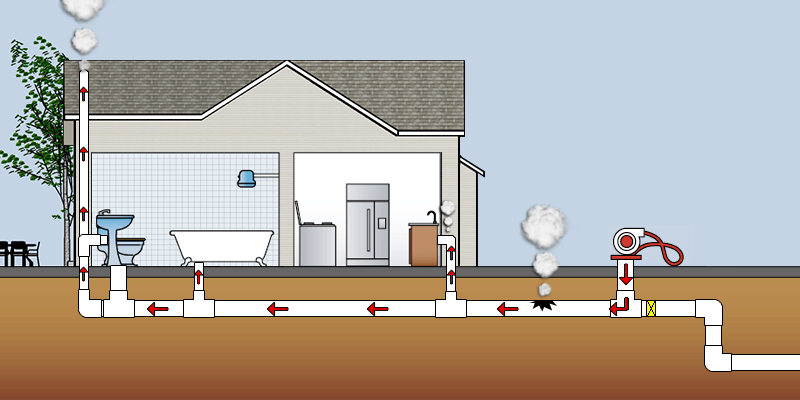 Sewer leaks are not always in a liquid form. These leaks sometimes come in the form of gases. Sewer gas, or methane gas can be unbearable to breath and can be quite taxing on one’s health. Sometimes the presence of sewer gas can be intermittent and the smell will come and go. This can be quite frustrating and difficult to diagnose for a homeowner. Here at Inception we have specific techniques and procedures to pin point these types of problems. We can smoke test your home (as seen above) to precisely locate the source of your smell. Call Today!